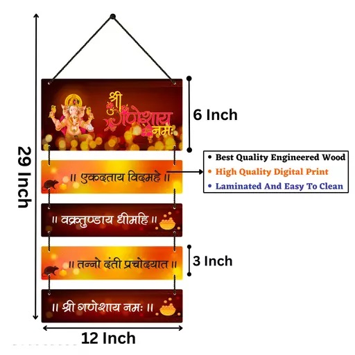 with Shree Ganeshay Namah Mantra Wooden Wall Hanging Home Decoration Items|Gift Items - Color