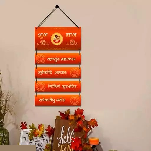 with Shri Vakratunda Ganesha Mantra Wall Hanging Wood Art Decoration Items Home Decor - Color