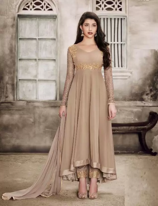Note : "This Product is Semi-Stitched, Not a Readymade." "STYLE : Designer Anarkali Salwar Suit COLOUR : As per Showing in Image TOP FABRIC : Faux Georgette BOTTOM FABRIC : Santoon INNER FABRIC : Santoon DUPATTA FABRIC : Nazneen SET CONTENTS : Top, Bottom, Inner and Dupatta SIZE : Free Size WORK : Embroidered PRODUCT TYPE : Semi Stitched SEASON : Any OCCASION : Wedding, Festival, Bridal, Party WASH CARE : Dry clean only"