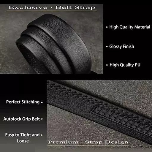COMBO OF 3 . No More Holes, One Size โSHOPBREAK Auto Lock Buckle Belt Provides Unique Adjustments For An Extremely Comfortable Fit. Fits Waist 28 To 40 Inches. Easy Removable Buckle Allows You To Use A Simple Scissor To Cut The Belt To Your Ideal Size To Give A Primmer And Custom-Tailored Appearance! Join The SHOPBREAK Belt Fashion Mission And Our Awesome Belts With Removable Buckles, Easy Use โ Just Slide The Dress Belt Into The Sliding Buckle And Pull The Belt Through, The Nice Belts Buckle Simply Auto Locks The Automatic Belt, To Release The Belt, Gently Push The Lever On The Side Of The Removable Buckle And Lock Will Snap. Simple, Smooth, And Sleek, Maximum Durability โ Presenting The Perfect Look Of A Fine, High-Quality Designer Belt For Men, Complemented With A Highly Fashionable Stylish, And Interchangeable Buckle That Is Elegantly Designed With Class. Scratch Resistant Durable Buckles Made To Last, Material - Made From Full Grain Vegan Synthetic Leather (Pu-Leather). Handcrafted For Those Who Do Not Like Animal Leather Products. Complemented With A Stylish Scratch Resistant Buckle That Is Elegantly Designed With Class