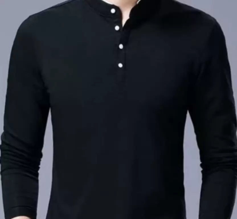 with Men Solid Mandarin Collar Cotton Blend T-shirt 5 - Color