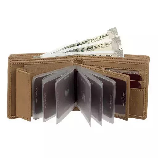 WILDAUK Men Casual, Travel, Formal Beige Artificial Leather Wallet - Regular Size (10 Card Slots) - Color