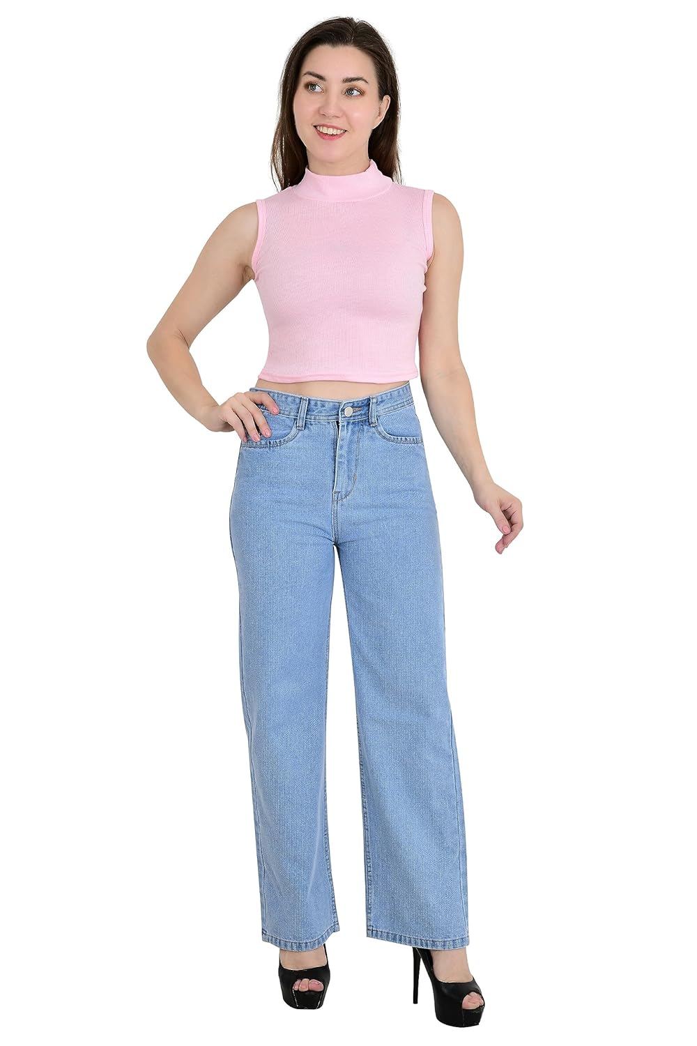 with ANDHAK Women Regular Fit Mock Neck Turtle Neck Sleeveless Crop Top (pink) - Color